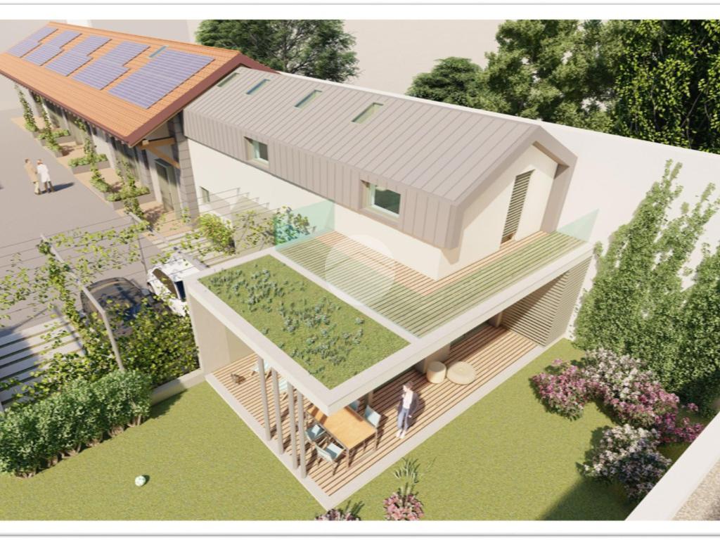 Verranno realizzati tre bilocali terra-cielo ciascuna con il proprio portico e ingresso e una grande abitazione disposta su due livelli abitativi con giardino privato.