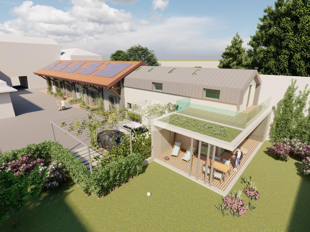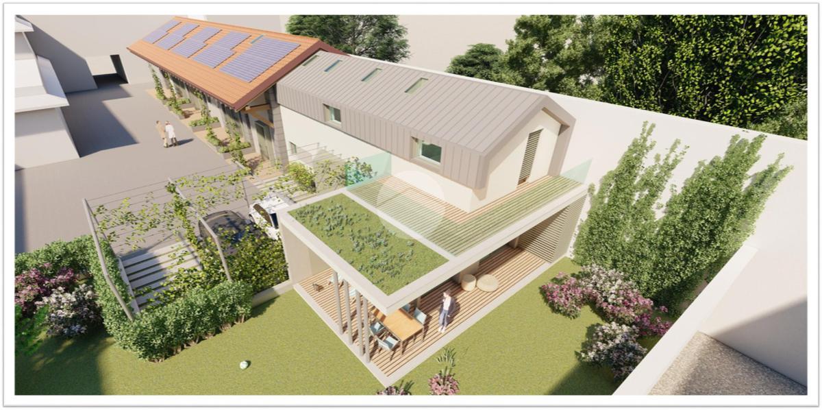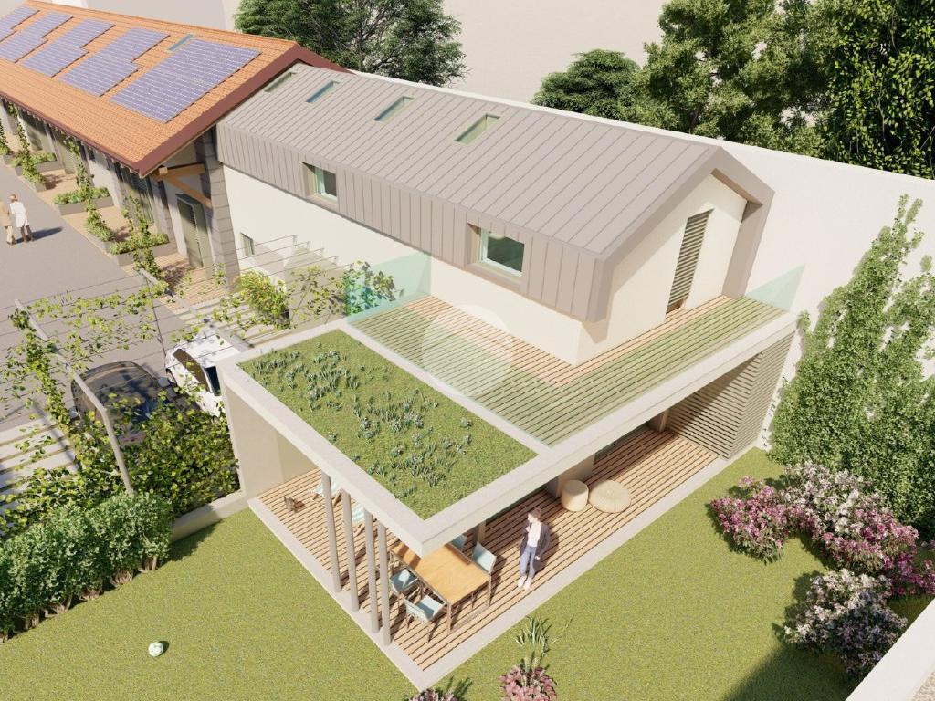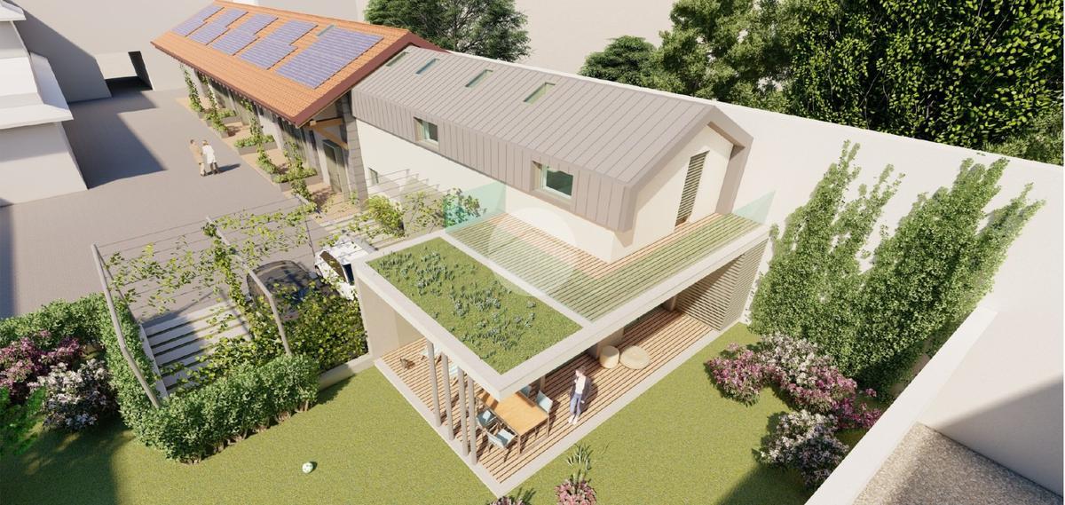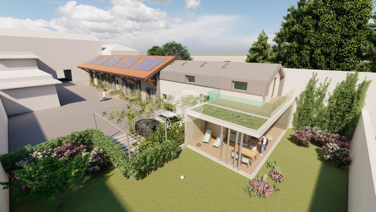 Verranno realizzati tre bilocali terra-cielo ciascuna con il proprio portico e ingresso e una grande abitazione disposta su due livelli abitativi con giardino privato.