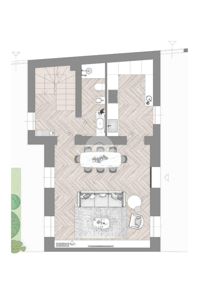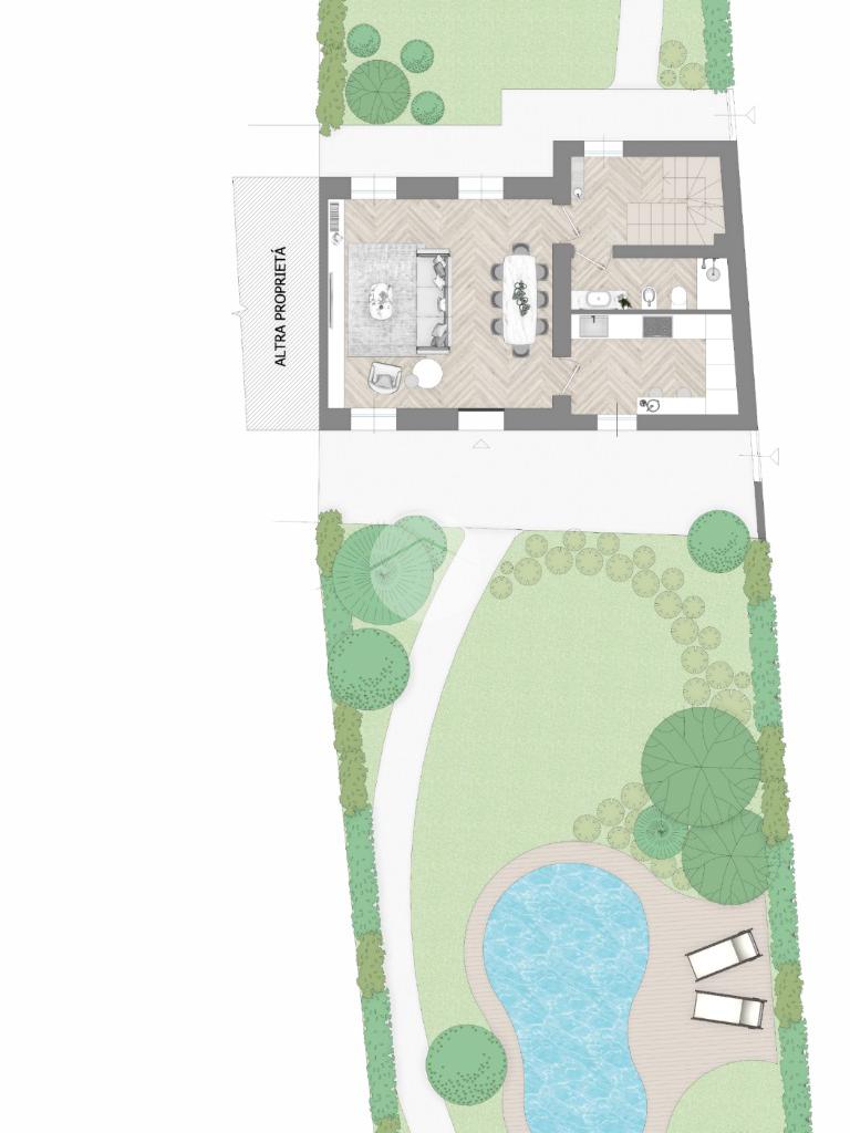 Di proprietà cantina, box e un ampio giardino privato piantumato e vivibile da utilizzare come ampliamento della zona giorno nella bella stagione e godersi momenti di relax, convivialità e benessere.