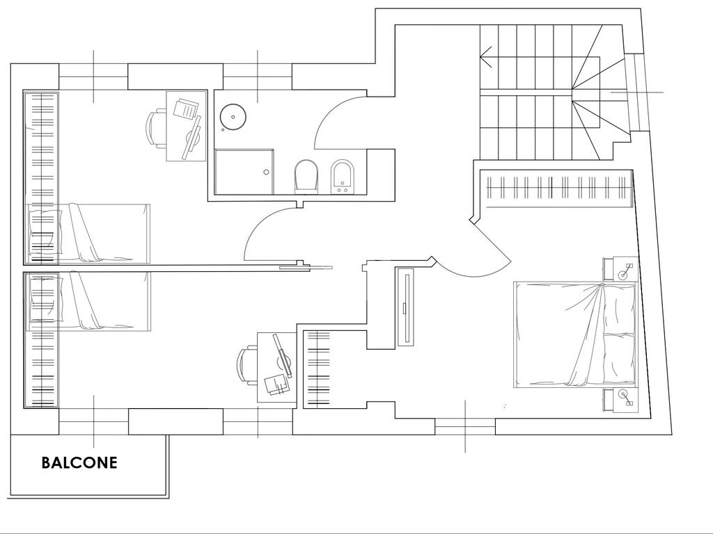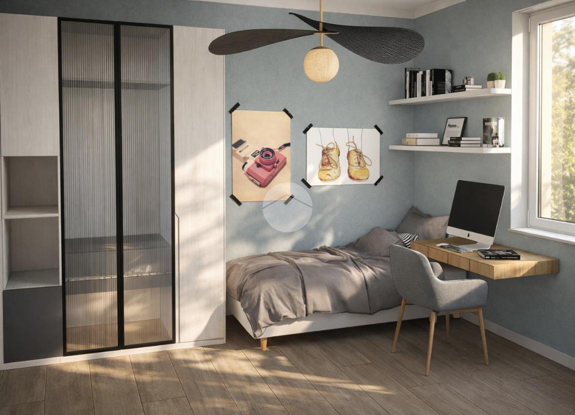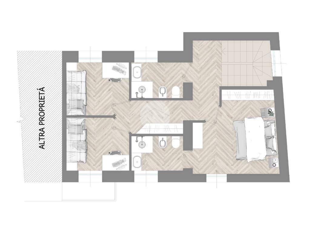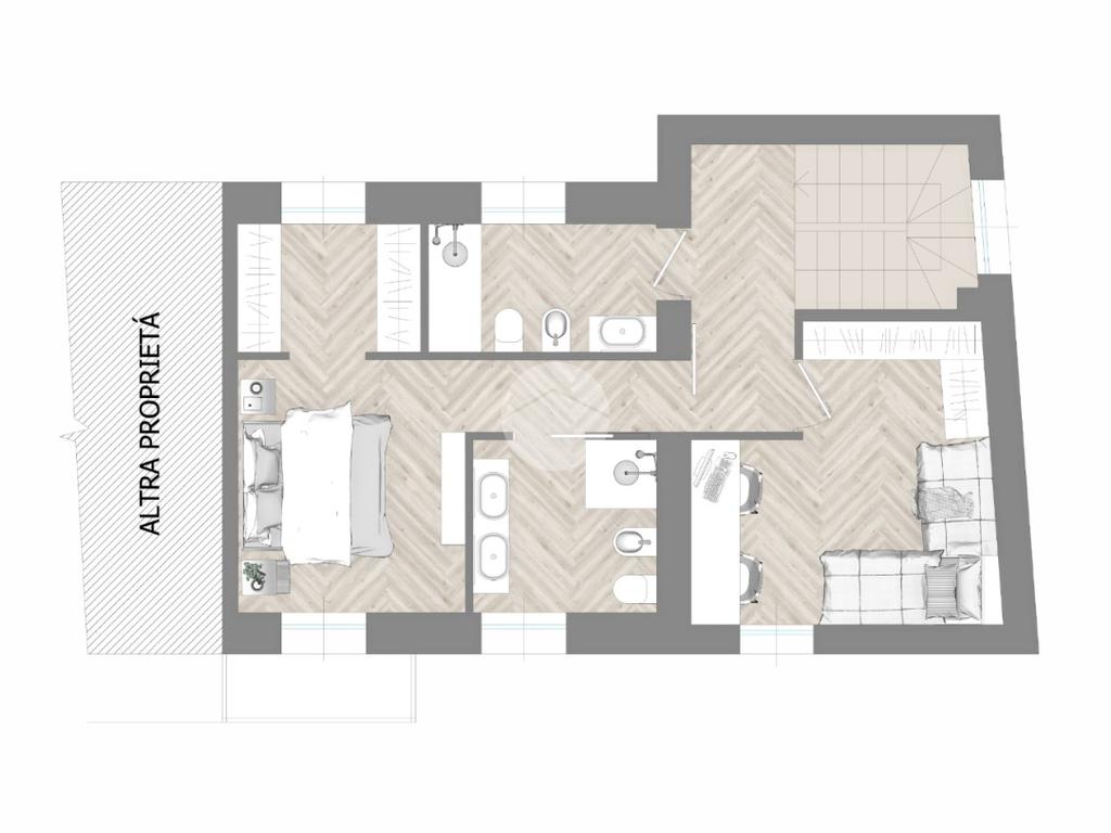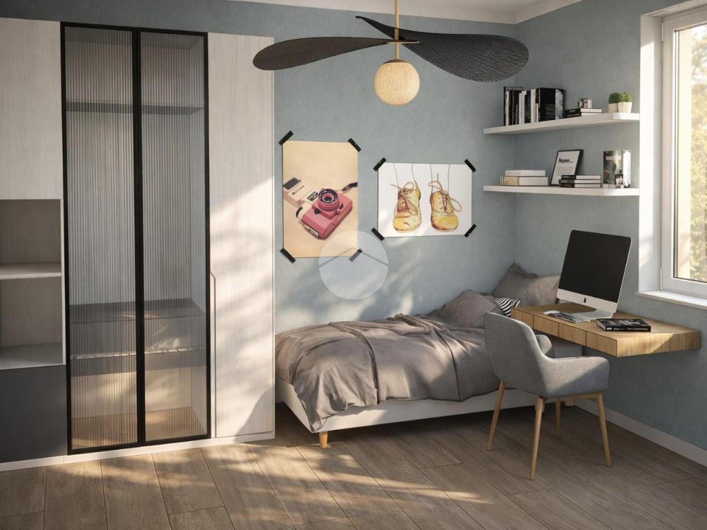 Tramite scala interna si accede al piano primo e si giunge nella zona notte. C’è la possibilità di suddividere i locali in diverse varianti. Esempio due camere grandi, di cui una con cabina armadio e doppio servizio oppure una camera da letto, due camerette e doppio servizio.